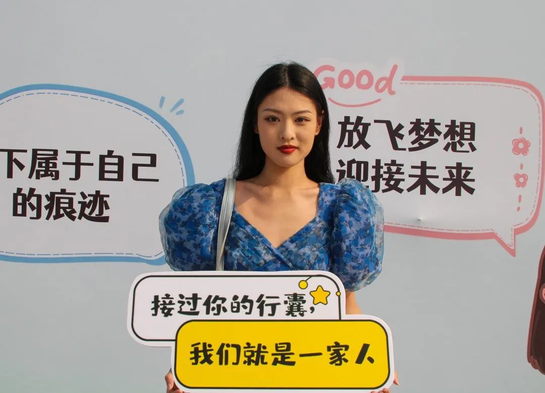 演员集结—一见倾“新”—初秋的晨风吹走炙热的焦虑,橙色朝霞相拥薄荷味的黎明。听,行李箱滑动的声音。看,一张张稚嫩中带着期待的面庞“演员们”不仅准备充分,还自备服化道具,带着蓬勃的朝气上场,愿你们背上求索的行囊,前赴校园的殿堂,奔向知识海洋,满载一船的光芒,驶过大学的时光