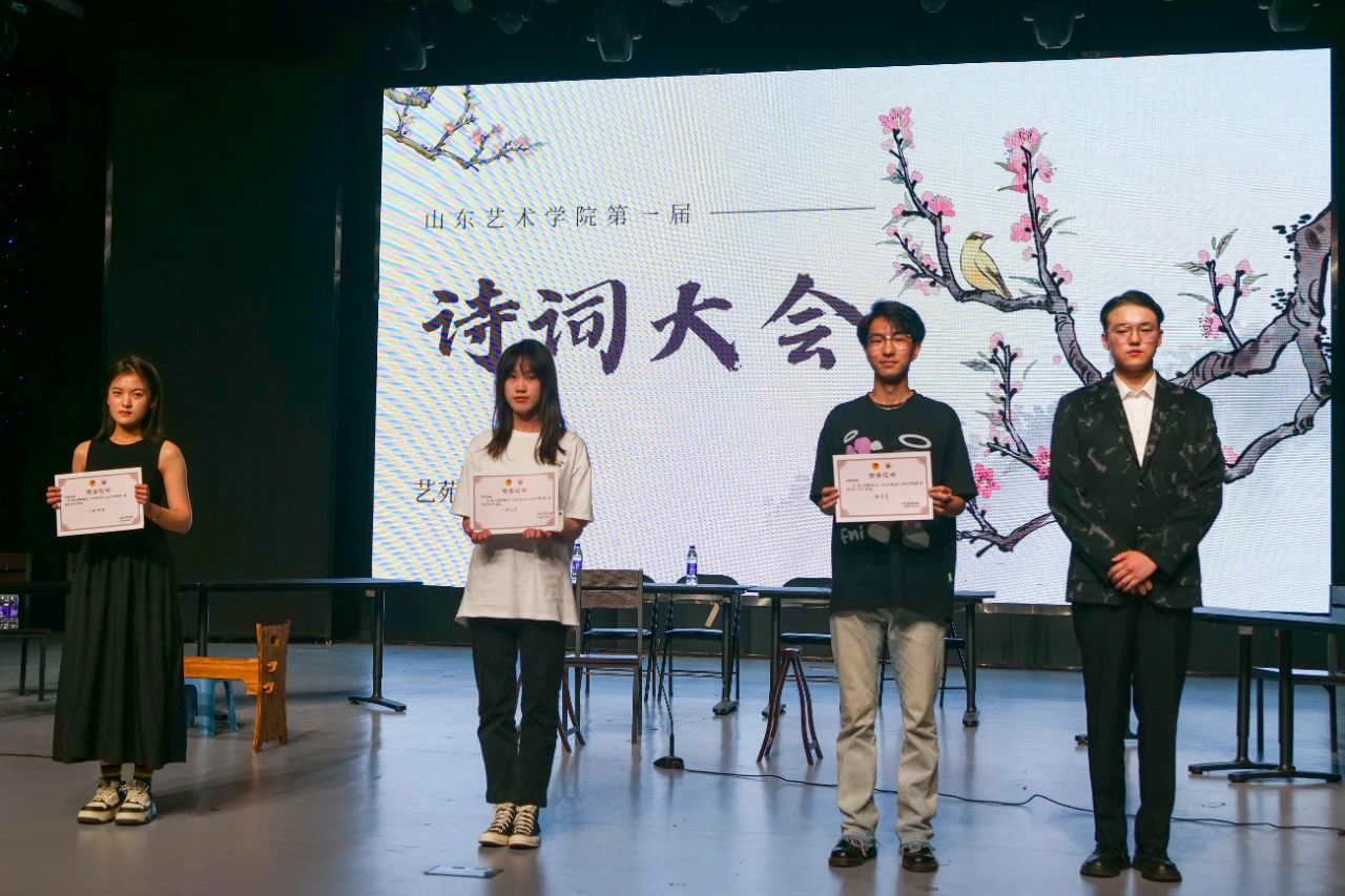 比赛在六名山艺学子齐声朗诵《劝学篇》中拉开帷幕。接着,每两组二级学院代表队依次进行PK,同学们积极抢答,镇定作答,展现了我校学子深厚的诗词功底。经过第一轮的比拼,六支队伍进入复赛。