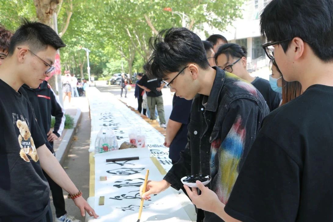 为进一步学习贯彻落实党的二十大精神,把深入开展学习贯彻习近平新时代中国特色社会主义思想主题教育与学校“青康课堂”廉洁文化教育相结合,营造崇廉尚廉的校园廉洁文化氛围。5月11日,由书法学院党总支主办,书法学院团总支、青廉学社、书法社团、山艺印社共同承办的主题教育“艺术党课”暨“青廉课堂”百米长卷展示创作活动在我校食堂门口成功举办。