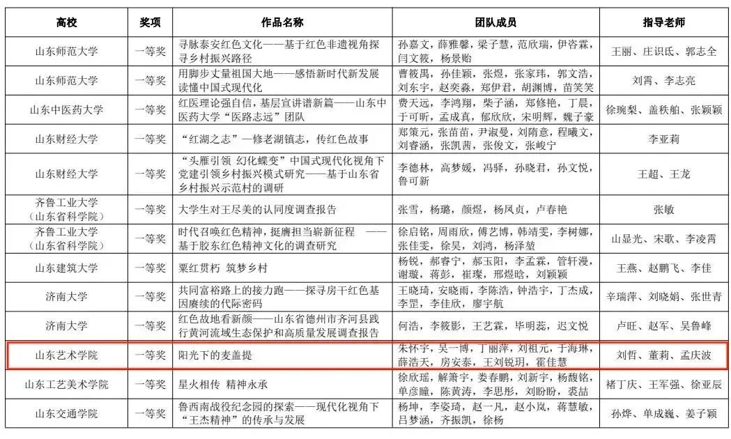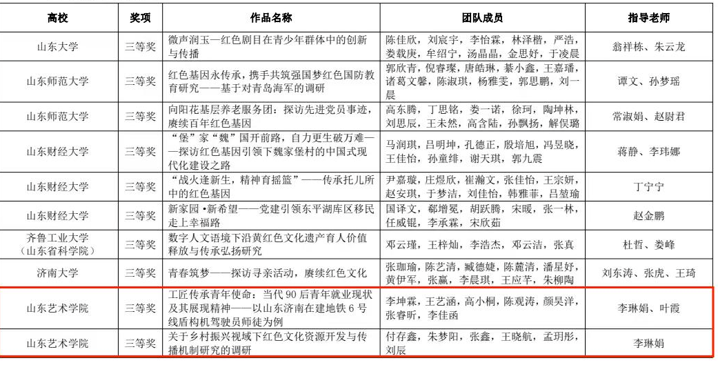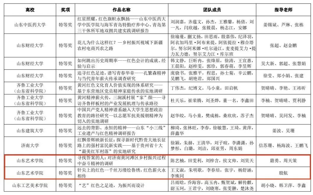 11月17日,第十八届“挑战杯”山东省大学生课外学术科技作品竞赛红色专项活动获奖名单公布,我校团队再获佳绩,荣获特等奖2个(其中1个项目获国赛二等奖)、一等奖1个、二等奖1个、三等奖2个。