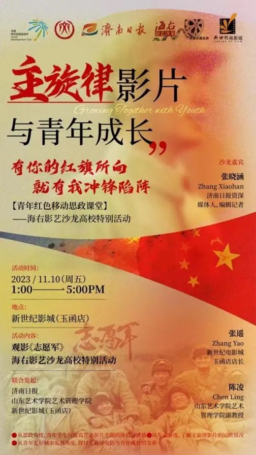 影片结束后,济南日报资深媒体人张晓涵从思政角度,与青年学生共同探讨了影片主题的体验与感悟。山东艺术学院艺术管理学院副教授陈凌从青年友好城市发展角度,探讨主旋律电影与青年成长的关系,提出要增强青年的使命感和责任感。新世纪电影城玉函店店长张遥从专业角度向师生介绍了主旋律影片的运营情况以及如何排片的技巧,为学生进一步研究影厅运营提供了很大帮助。