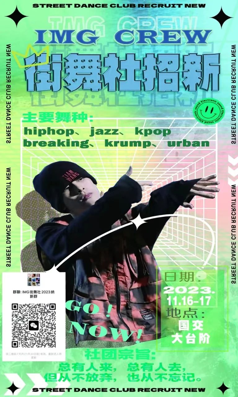 如果你渴望在舞蹈的海洋里挥洒汗水,寻找舞伴,体验激情与挑战,那么赶快加入我们的街舞社吧!我们欢迎你的加入。让我们一起用舞蹈点亮校园的激情之火!