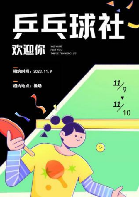 欢迎加入乒乓球社,本社致力于推动乒乓球运动在我校的普及和发展,团结全校乒乓球爱好者和积极分子,为喜爱乒乓球运动的学生们创造一个良好的学习、交流平台。