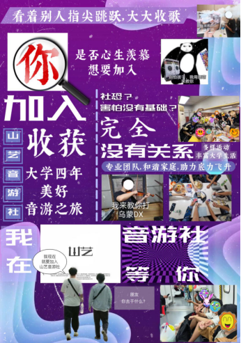 山艺音游社是我校新兴的音乐游戏同好社团。旨在培养同学们音乐感受能力的同时加强身体素质。来一起共同创造美好回忆吧!