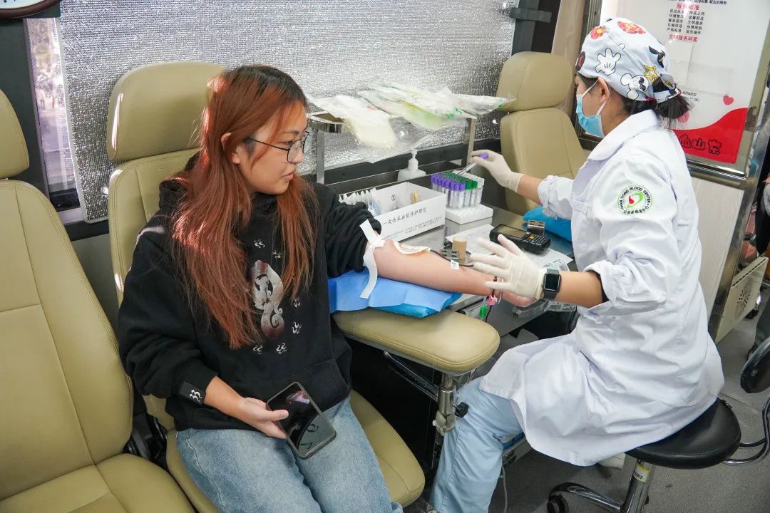 在活动现场,志愿者们早早地来到献血点进行活动的前期准备工作,通过设立宣传横幅、现场咨询答疑等方式向同学们普及献血知识,让他们了解献血的重要性和必要性。前来献血的山艺学子在志愿者和献血办的医生指引下,井然有序地扫描二维码、填表登记、使用血压仪测量血压、填写身体信息、在献血车上进行抽血化验、采血等常规检查工作。主办方为献血者提供了免费的血型检测、精美礼品、爱心食物,让大家在献血的同时感受到了温暖和关怀。