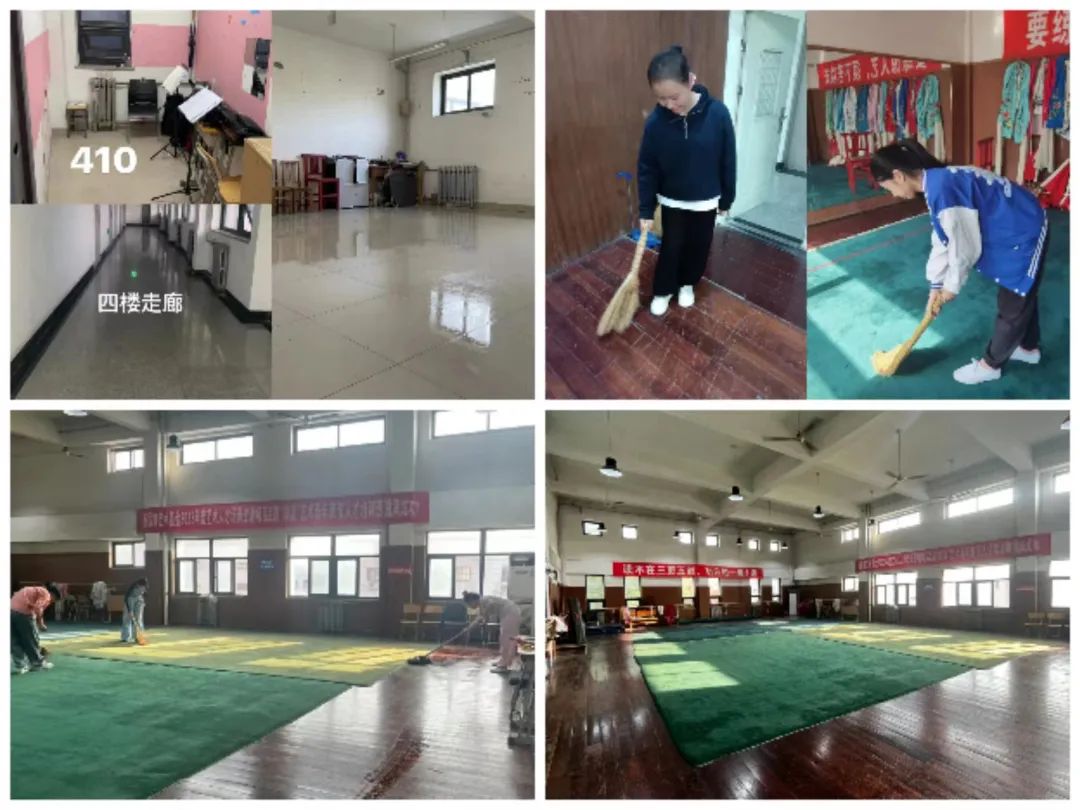 劳动中,班主任带领、班委带头,到场的同学都干劲十足,斗志昂扬。经过同学们的辛勤劳动,教室、琴房、走廊等区域焕然一新,洁净的地板、整齐的桌椅、明亮的窗户都纤尘不染。同学们的劳动不仅使环境变得整洁,也带给每一位同学带来了劳动的喜悦。