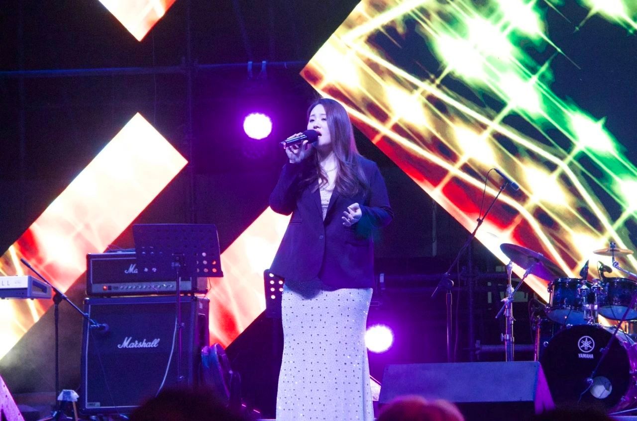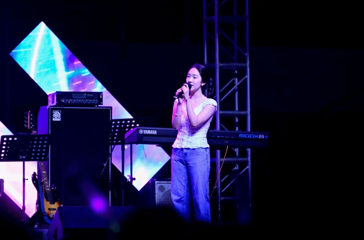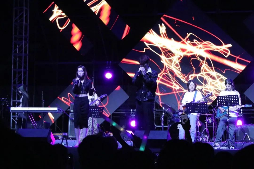 比赛现场,灯光璀璨,气氛热烈,无数挥舞的荧光棒形成一片彩虹色的荧光海洋。选手们依次登台演唱,用风格迥异的歌曲诠释着对音乐的热爱与执着,为观众献上了一场视听盛宴。现代音乐学院流行音乐专业的同学们带来的6首助演歌曲,更是将现场气氛推向了高潮,观众们纷纷跟随音乐节奏一起挥舞着手中的荧光棒。