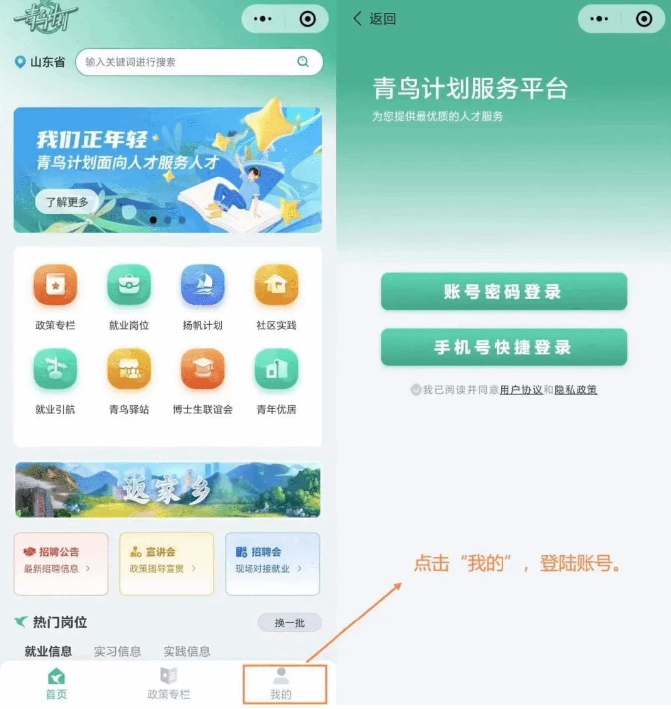 关注“青鸟计划”小程序即可完成岗位查找、简历投递、资格审核、人岗匹配。