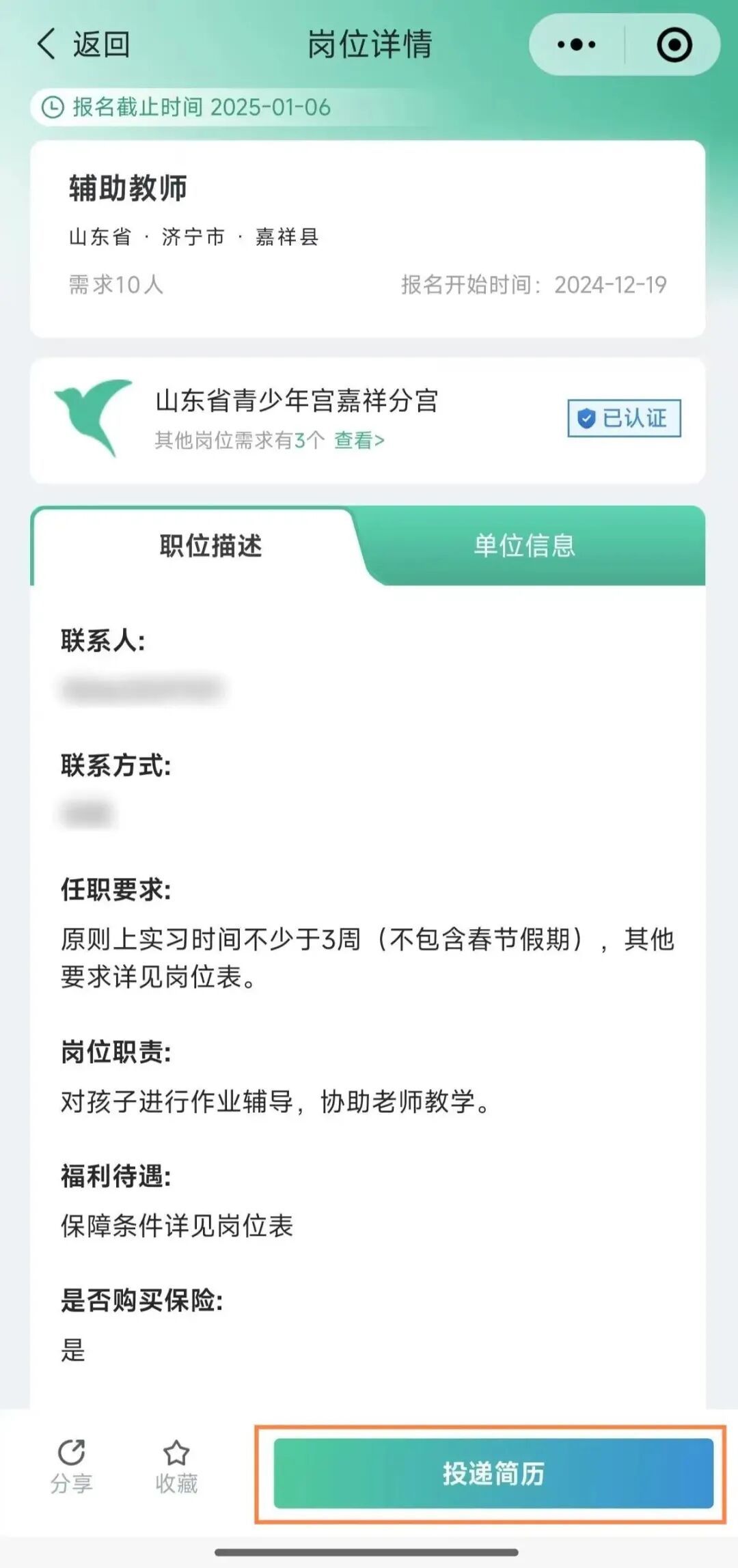 6.选择意向岗位,点击右下角“投递简历”,即为报名成功