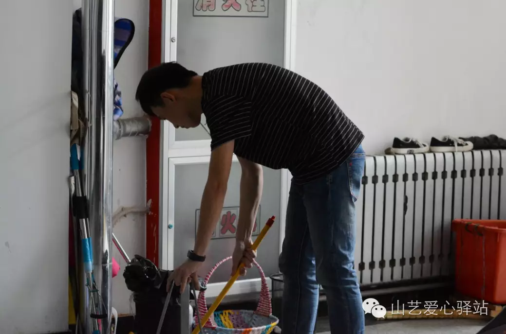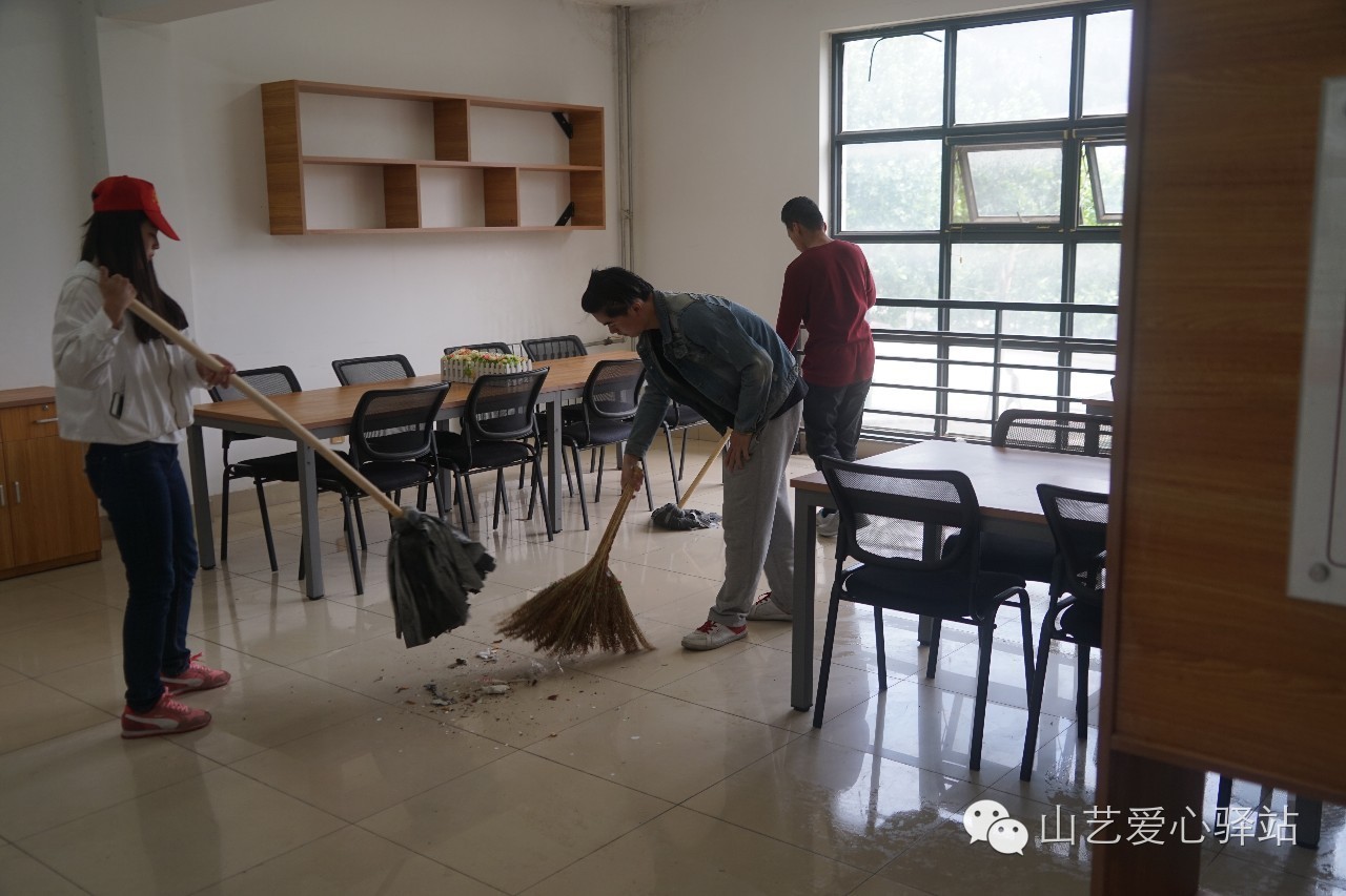5月15日,在山艺美院“爱心驿站”志愿者的带领下,美术学院2015级国画团支部、美术批评团支部、美术教育团支部、书法团支部、绘画团支部的上百名团员代表,对各个公寓的大厅、楼道、楼梯、宿管值班室、如意书屋等进行了全面大扫除。各团支部志愿者代表积极参与,干劲十足,真切体会到了宿管阿姨们的辛苦。