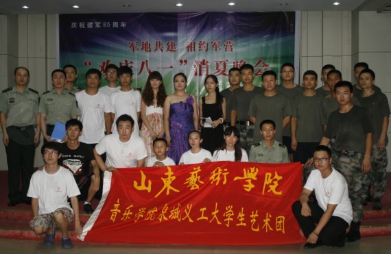 本站讯为庆祝“八一”建军节,积极响应校团委组织开展大学生暑期社会实践活动的号召,音乐学院团总支组织泉城义工大学生艺术团于7月30日赴济南军区某部队慰问演出,同时开展暑期社会实践活动,与部队官兵共同庆祝中国人民解放军建军85周年。