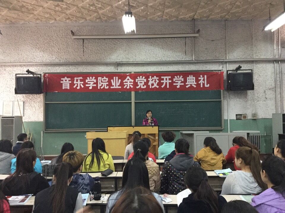 据悉,音乐学院业余党校自成立以来,已举办了二十余期培训班,两千余名优秀学生进行了较为系统的党的基本理论知识培训,五百余名业余党校的毕业学员在学院党总支的教育、培养和考核下光荣的加入了中国共产党。本期业余党校是从去年12月中旬开始报名,经班级民主推荐,团支部考核,辅导员把关,团总支审查,党总支审批,共有招收学员119名,其中研究生学员2名,本科生117名。本次业余党校课程安排较为紧凑,内容丰富多彩,形式生动活泼,采取集中授课和学员自学相结合的学习方式,将使学员们在轻松和谐的氛围中接受马克思主义教育和党性综合素质培训。