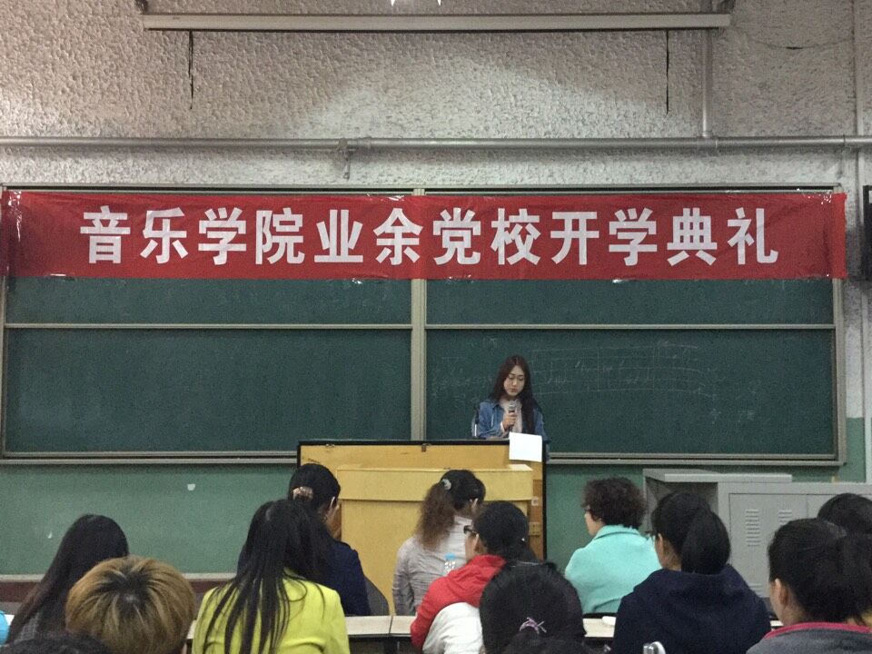 本战讯 2015年3月21日上午11点,音乐学院新一期业余党校开学典礼在我文东校区阶梯教室隆重举行。音乐学院团总支书记万慧老师、研究生党支部书记王婷老师及音乐学院全体辅导员老师参加了开学典礼。典礼由武玲娟老师主持。