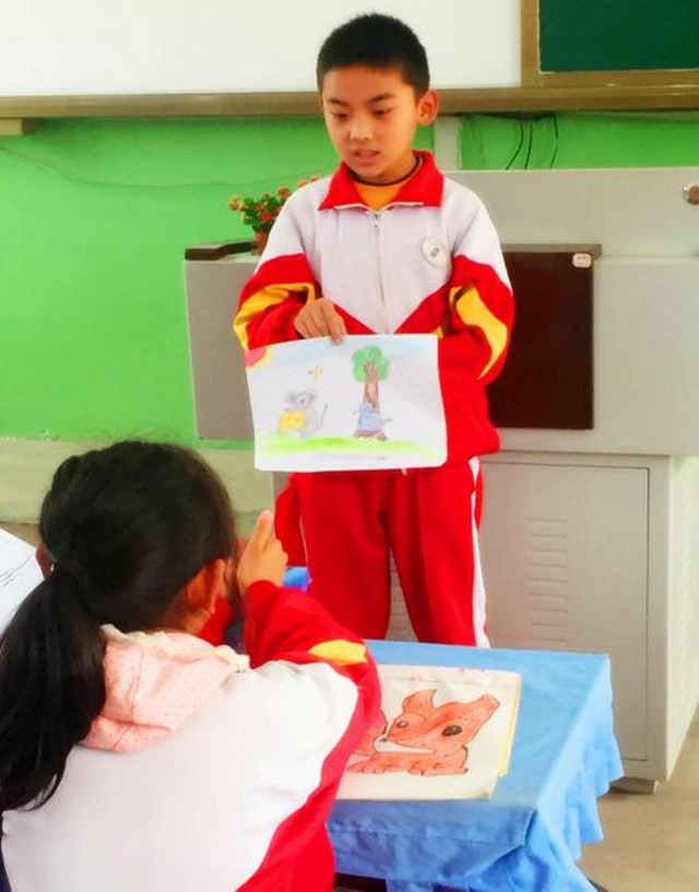 我们的志愿者秦璐瑶,奇思妙想善于带动课堂气氛,鼓励孩子们独立思考,用科学的方法培养孩子们的创新意识,“给你两幅画,你用画笔编故事”倍受孩子们的欢迎,大鲸鱼要是遇见了小乌龟会怎么样?一系列的想法充满了孩子们的脑海,孩子们恨不得赶紧用画笔画出来。我们一起来欣赏吧!