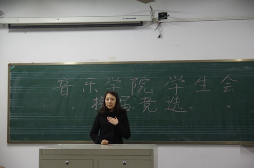 本站讯3月11日中午12点与晚六点,音乐学院于演播厅、504教室顺利举行了2014届学生会换届竞选活动。团总支书记王志强老师现场指导,2013届学生会主席团以及学生会各年级同学参加了此次竞选。