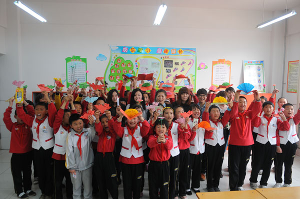 本站讯用艺术点亮生活,用爱撒下一片阳光。4月27日,设计学院学生在团总支老师的带领下,来到济南农民工子弟定点学校之一济南匡山小学进行爱心支教活动。