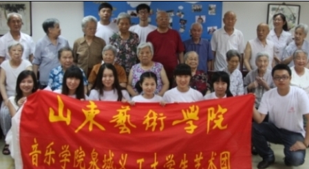 音乐学院“泉城义工”大学生艺术团走进济南市社会福利院,用自身专业特长,为老人们带来了欢乐,展现了我院学生高超的专业技术水平和社会责任感。在社会实践的过程中,同学们也提高了自己的专业水准和沟通交流能力,获得得到社会各界的一致好评。