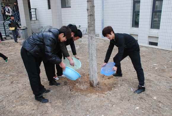 3月12日舞蹈学院团总支组织了2011级全体在校生以及中专部全体学生开展“爱树护绿”志愿者活动,对舞蹈学院教学楼附近的植被和树木进行浇灌。