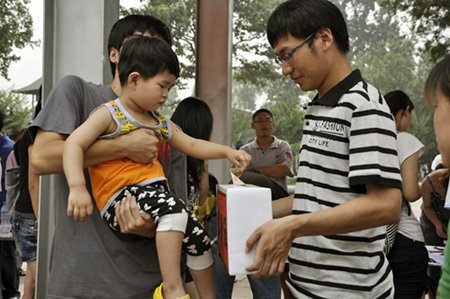 作品完成后,由学生试穿走秀。最终由主席团及部长投票选出六项最佳作品,并评出比赛最佳潮T奖、最佳创意奖、最佳手绘奖、一等奖、二等奖和三等奖六个奖项,大赛的作品评审结果将于下周公布。而本次大赛的另一个两点在于最终举行的爱心捐幕仪式,只要向我们的爱心募捐箱中投放20元,就可以任意带走一件喜欢的作品,而这20元也将作为活动募集的善款。