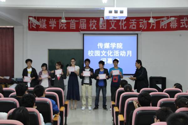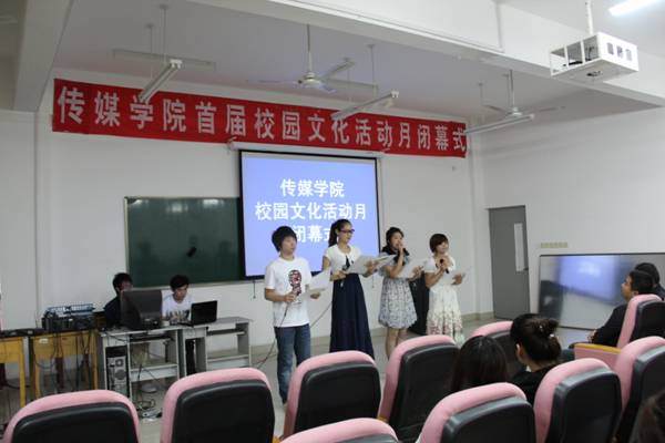 本报讯(通讯员朱德乐杨成龙)2011年5月9日,由传媒学院团总支主办,学生会承办的校园文化活动月闭幕式在艺文楼3楼报告厅如期举行。传媒学院党总支副书记周森、团总支各位老师以及部分学生代表出席了闭幕式。
