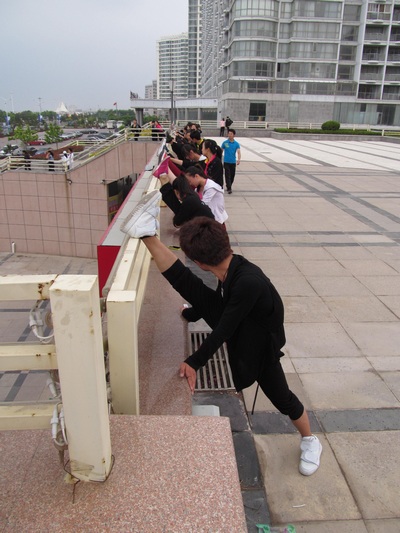 舞蹈学院本次参加海阳亚沙会开闭幕文艺演出中,在中专部挑选了专业优秀的28名学生与大学生一起奔赴海阳。中专部的学生服从指挥,认真排练,以饱满的热情,精益求精的学习态度成为本次艺术实践中靓丽的风景线。5月28日早6点,在到达驻地的第二天,中专部的小同学们就在班主任张学兵老师的带领下自觉的早起练晨功,给海阳这个美丽的海滨城市带来了灵动的舞韵风姿。她们不辍学习的精神头成为舞蹈学院广大师生学习的楷模。