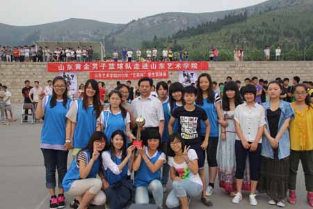 本站讯2013年5月16日下午2:00,由校团委、公共课教学部主办,体育教研室、校学生会体育部承办的山东艺术学院2013年“艺苑杯”学生篮球赛在长清校区篮球场圆满落幕。山东艺术学院副院长王力克、校团委书记苏茂兴、公共课教学部主任张有平、副主任王晓春、团委副书记孔宪坤莅临现场观看决赛。山东黄金篮球俱乐部主教练巩晓彬、总经理卢长华、教练鞠维松、助理教练员杨文海,以及吴轲、王汝恒等男篮队员也受邀参加颁奖仪式与我院篮球队员们亲切交流,合影留念。