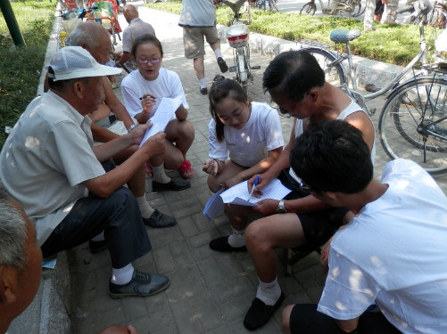 8月1日,社会调研团的10名成员来到了临清大众公园,在这里每天早晨都有一批京剧戏迷聚集在公园进行排演、交流。实践团成员通过与京剧戏迷交流、观看他们的演唱,初步了解到京剧在临清人日常生活中的作用,也感受到临清票友高超的表演水平。8月2日,调研团成员拜访了新中国成立后全国第一个京剧票社“群艺”联谊协会。协会组织者祁长安老人向调研团讲述了临清戏曲的发展背景,他认为戏曲要从娃娃抓起,京剧进课堂是一个很好的政策,希望这一政策能得到足够的重视。