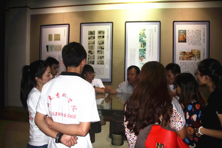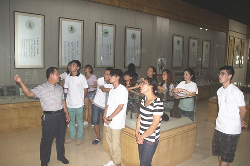 7月10日下午,实践团成员来到了宁津县文化艺术中心,分别参观了宁津展览馆、宁津蟋蟀文博馆、杂技文博馆、《大刀记》文博馆、非物质文化遗产展览馆、美术馆、博物馆、美术培训馆、舞蹈训练馆等九大展馆。蟋蟀文博馆集玩蟋、斗蟋、培训、鉴定、收藏、研究、观赏、比赛于一体,为全国的蟋蟀爱好者提供了一个良好的蟋蟀文化交流场所,给实践团成员留下了深刻的印象。