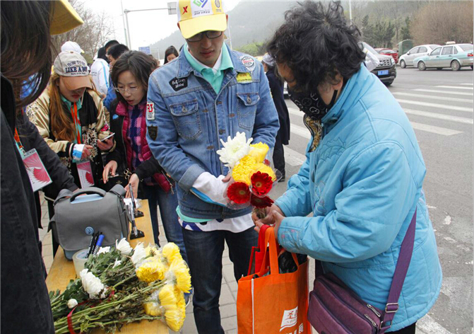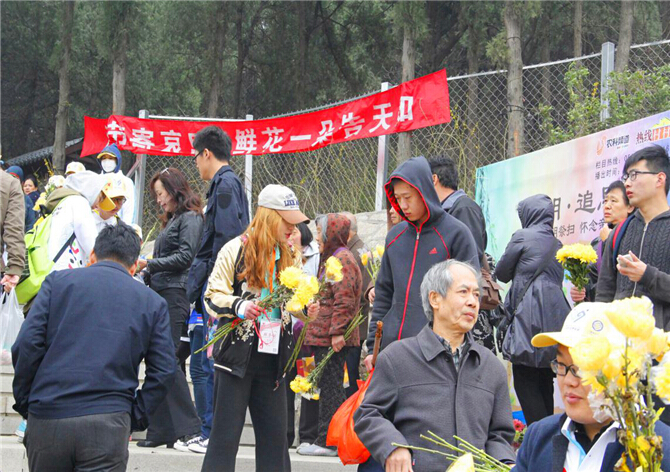 为了此次活动达到最好的效果,让更多的人了解到传统的祭祀方式对环境的污染和对森林防火的危险,志愿者拿着鲜花,深入到人群中详细解说,得到了市民的理解和支持。