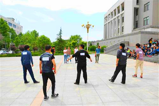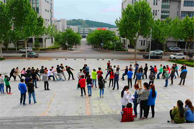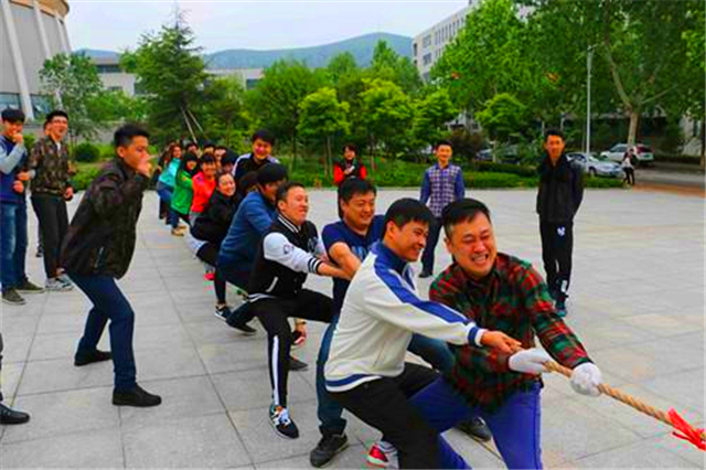 趣味运动会在长清校区台阶广场举行。运动会分为“大叔对阵小鲜肉拔河比赛”与“火热撕名牌”两个环节。活动开始,戏剧影视学院党总支郭秋华书记一声哨响,拔河比赛开始,老师们组成的“魅力大叔队”成员们全身伸展拉直,脚尖在膝盖之前,双手手心向上 ,经验充分;另外一边活力四射、青春昂扬的学生“小鲜肉”联队,号声冲天,冲劲十足!“撕名牌”环节更是考验体力与身体灵活度的重头戏,师生无分你我,呐喊跑进。