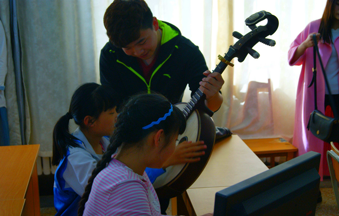 活动中,志愿者特地为患有试听障碍的孩子准备了精彩的文艺节目:笛子与钢琴搭配的《外婆的澎湖湾》等歌曲悠扬动听,小朋友听到自己熟悉的乐曲也显得颇为开心;热闹的唢呐曲《春耕忙》让小朋友们兴奋了起来;最后的民乐合奏《送我一枝玫瑰花》,更是在欢笑中让小朋友们认识了琵琶和阮这两种民间传统乐器。