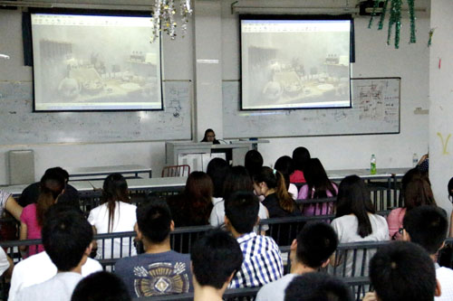 本站讯2013年6月19日星期三下午14时10分,设计学院视传专业2011级、2010级在设计A楼C301教室展开以“放飞梦想 我的中国梦”为主题的班会,班会围绕着“交流”与“学习”,由四名赴台交流学习的学生代表展开。