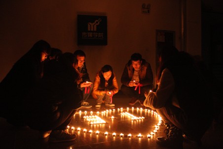 本站讯3月2日晚,十余名传媒学子自发于长清校区进行“传情昆明千里祈福”活动。