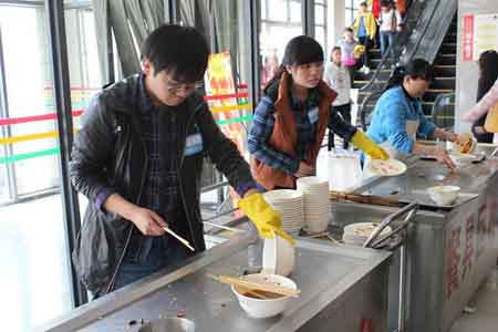 本站讯春风送暖,爱心传情。为进一步推动“学雷锋”活动深入持续开展,引导和号召广大学生以实际行动投入到志愿服务中去,3月30日,由传媒学院学生会主办,文艺部、生活卫生部、外联部联合承办的“传媒学院餐厅爱心行”活动在餐厅举行。