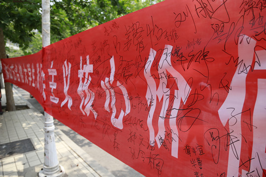 此次活动得到同学们的广泛参与,截止活动结束,10米长横幅已经密密麻麻的写满了名字。大家表示要在以后的学习生活生活中,自觉地、高标准地践行“社会主义核心价值体系”,提高自身道德修养,坚定理想信念,弘扬民族精神,为构建社会主义和谐社会贡献自己力量。