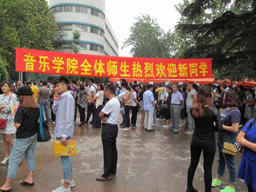 本站讯2014年9月12日,音乐学院迎来了14届的新生。早上七点半,迎新的工作人员们刚刚准备就绪,新生和家长们便陆续到来了,校园里一派热闹的景象。