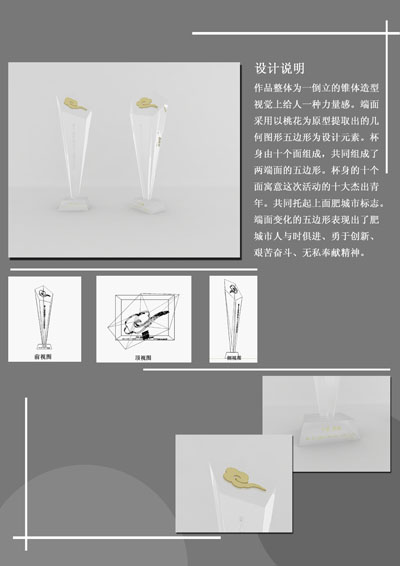 本站讯近期,由山东省旅游局、泰安市人民政府主办,山东省旅游商品开发服务中心、泰安市旅游局、肥城市人民政府承办的主题为“吉祥桃都福地肥城”的“肥城市十大杰出青年奖杯”设计比赛在肥城举行。我校设计学院4名同学参加了比赛。其中,陈文涛获得一等奖, 王振、杨磊、聂风岗获得二等奖。我校被大赛组委会授予“优秀组织奖”。