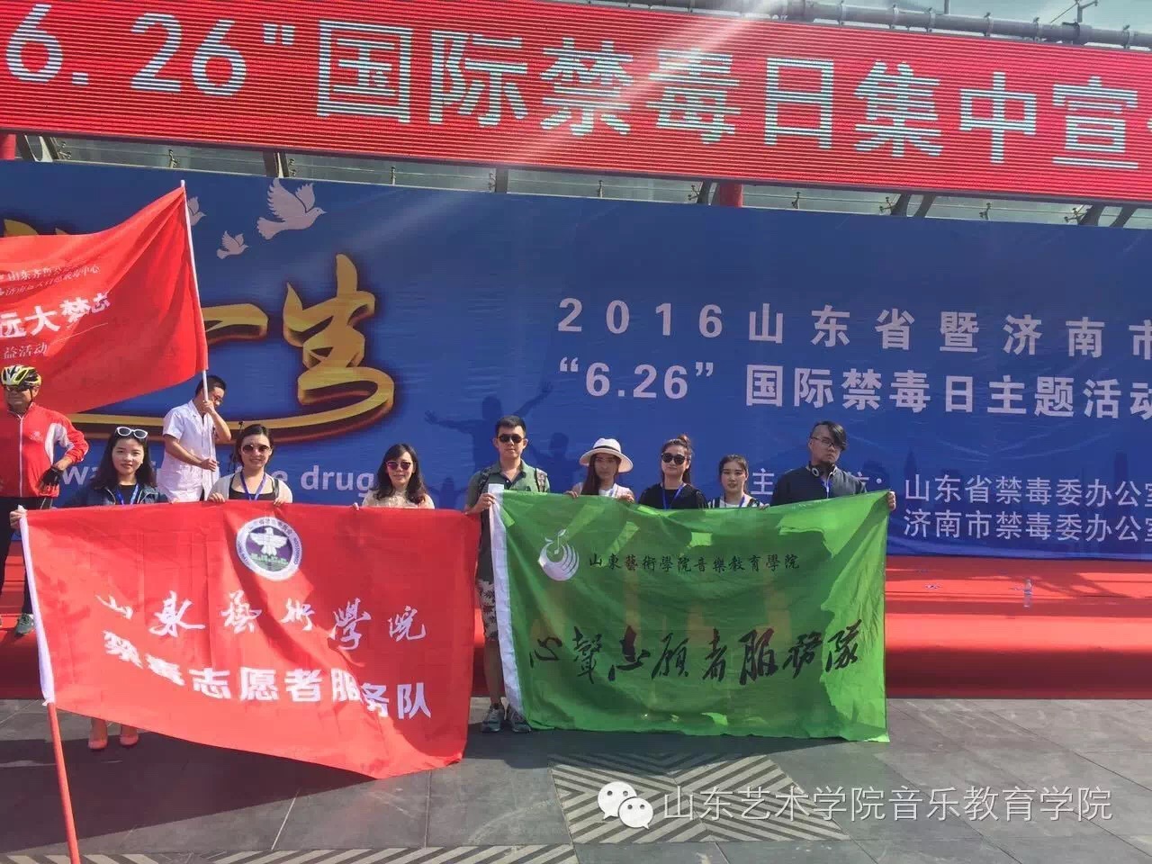 6月26日上午,我院“心声志愿者服务队”作为大学生代表参加了由山东省和济南市禁毒委员会在济南舜耕国际会展中心联合举办的“远离毒品,阳光一生”--“6.26”国际禁毒日主题宣传活动。