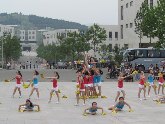 为庆祝建党90周年,弘扬红色主旋律,丰富广大同学的课余生活,促进我校学生综合素质拓展,促进社会主义和谐校园建设,由山东艺术学院团委主办,舞蹈学院承办的山东艺术学院第五届大学生科技文化艺术节活动项目——“活力青春﹒炫舞激情”第三届啦啦操比赛于2011年5月17日下午2点30分在我院长清校区戏剧舞蹈楼前广场上拉开战幕。我院胡德定副院长、团委苏茂兴书记、学生处郑华丽副处长及各二级学院的多位领导、老师列席观看了整场比赛。