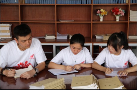 刚到学校,志愿者们就受到了学校领导的热情接待,不仅带领志愿者们参观了学校的教学环境,还带他们去篮球场观摩了孩子们的体育课,志愿者参与了孩子们的体育活动。随后志愿者们向学校老师询问了孩子们的学习生活情况。五年级的刘和兴在自己11个月大的时候父母双亡,和姐姐一直跟奶奶生活在一起,生活的遭遇并没有夺走孩子最纯真的笑容,他积极参加了学校的各种活动,小小的肩膀过早的就承担起了家庭的重担,阳光照在他黝黑的面庞上显得格外温暖。