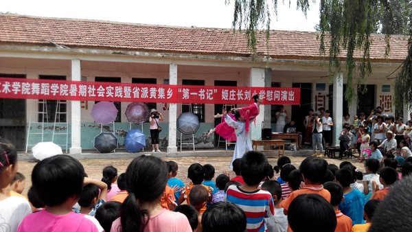 本站讯7月3日至4日,舞蹈学院2014年暑期大学生三下乡社会实践团来到了菏泽郓城,期间分别在郓城一中、黄集乡姬庄长刘小学进行了公益演出。本次活动是山东艺术学院与郓城一中建立友好学校关系签约授牌后,舞蹈学院积极跟进的一项重要的艺术教育与实践活动,是舞蹈学院“走进舞蹈”雷云系列行艺术交流展演组成部分之一。活动为当地中小学带去了高雅的舞蹈艺术,充分展示了我校师生积极参与志愿服务、主动锻炼实践的良好精神风貌,丰富并提升了我校“第一书记”的文化帮扶工作。