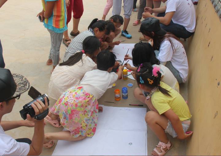 在“手绘美丽乡村”之余,大学生暑期实践团的成员们还发挥专业优势,举办了生动形象的美术小课堂,采取简笔画、卡通画、书法讲解与演示相结合的方式,让乡村的孩子们在画画的同时学习到了美术知识,普及了美术常识,中间穿插游戏,增加了孩子们的兴趣。