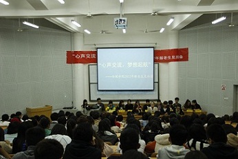 本站讯心灵与心灵的交流,梦想与激情的碰撞。10月16日下午6点30分,由传媒学院学生会主办,秘书处承办的“心声交流梦想起航”传媒学院2012年新老生见面交流会在公共二教室成功举办,传媒学院学生会主要成员出席了本次活动。