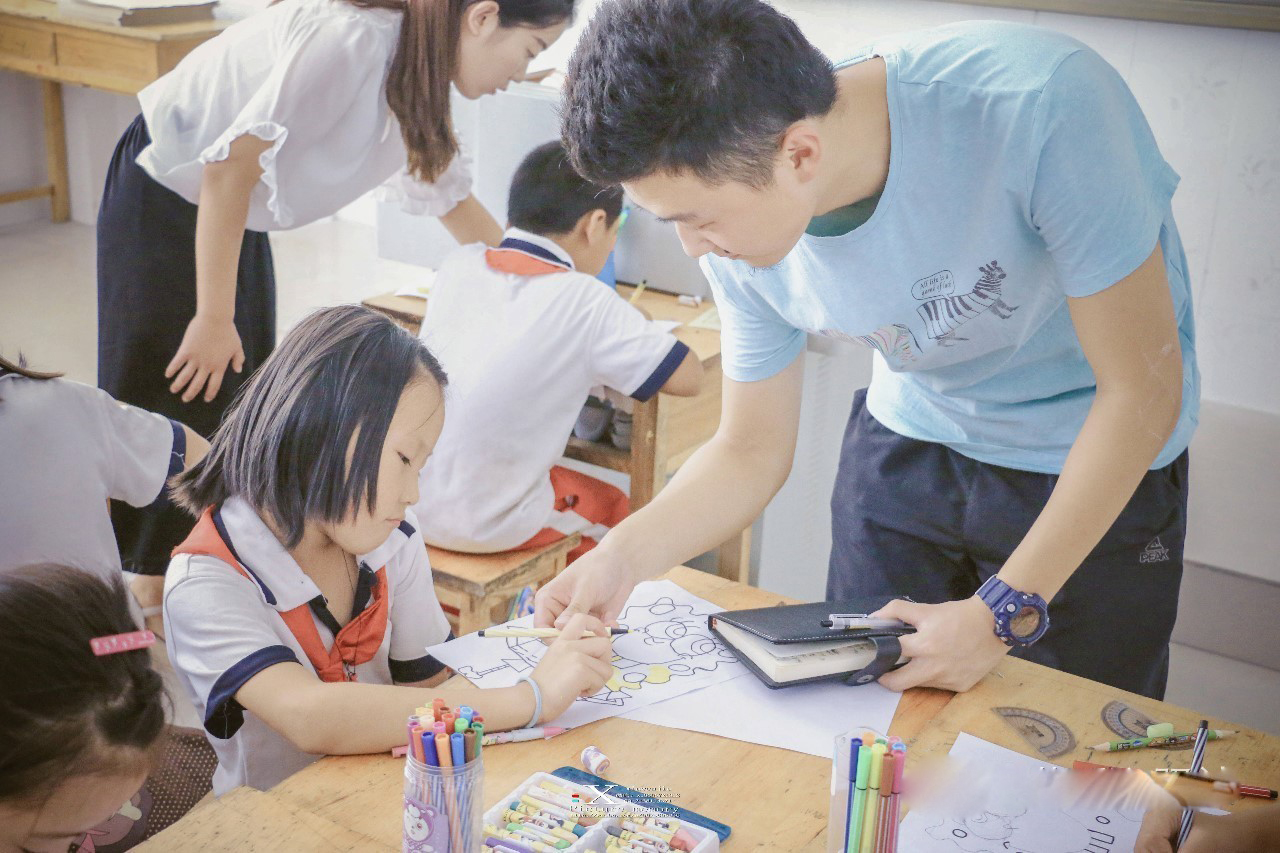 进入校园,志愿者们就被孩子们的欢乐与兴奋包围。随后,在老师的指导下,各年级的同学们开始了新学期的第一堂艺术课,孩子们态度积极,充满活力,老师们十分热情,认真讲课。