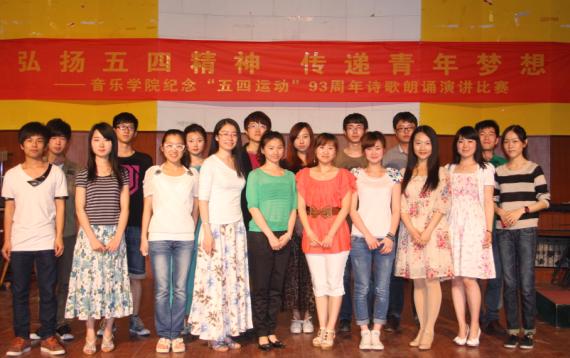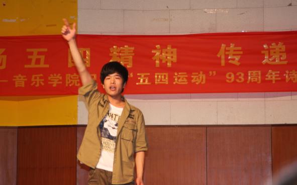 本站讯5月4日晚19点30分,由音乐学院学生会主办的“弘扬五四精神,传递青年梦想”诗歌朗诵比赛在文东校区演播厅拉开帷幕。