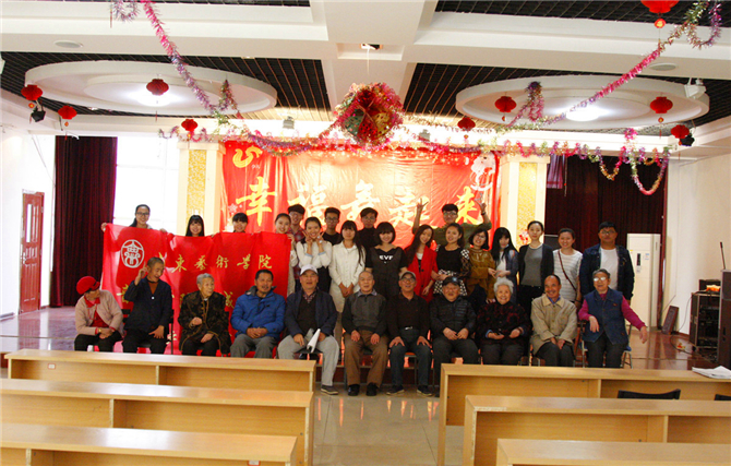 通过养老院的工作人员介绍义工们了解到,在这里也有许多爱唱歌的爷爷奶奶,他们平均年龄85岁,但他们依旧还喜爱着艺术,热爱着生活。在同学们的热情邀请下,老人和同学们一起演唱了一首又一首的歌曲,从《夕阳红》到《松花江上》,从《祝你平安》到《荷塘月色》,老人们对生活的热爱深深的感动着在场的每一位义工。
