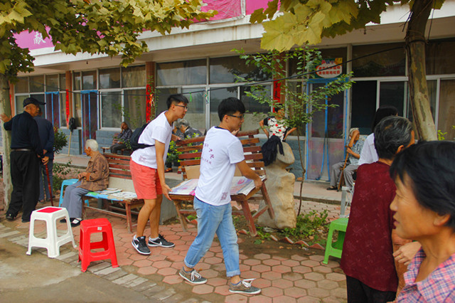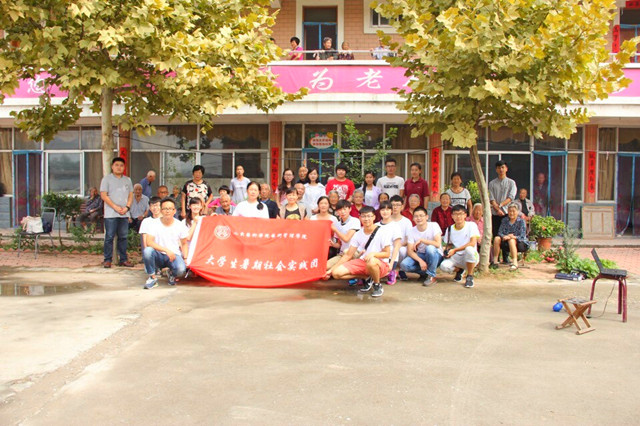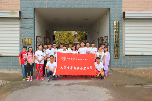 朝阳映晚霞,艺管在行动 (本站讯) 为深入学习贯彻习近平总书记系列重要讲话精神, 引领广大青年学生按照习近平总书记关于“勤学、修德、明辨、笃实”的“八字真经”的要求,深入社会,了解社会,树立和践行社会主义核心价值观,同时根据《山东艺术学院关于开展2015年大学生志愿者暑期“三下乡”社会实践活动的通知》和《山东艺术学院应用型人才培养特色名校建设工程推进方案》的要求,2015年9月5日,山东艺术学院艺术管理学院暑期大学生社会实践团一行19人来到济南市长清区南山庄园老年公寓为老人们送去别出心裁的文化活动和志愿服务。