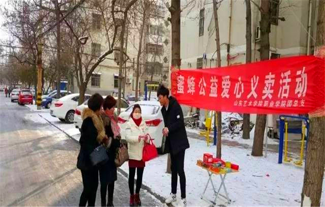 本站讯寒假期间,我院学生会“蜜蜂公益”部组织了爱心义卖笔活动。这次活动的目的是通过爱心义卖,为贫困孩子贡献自己的一份爱心,并将所盈利的钱都当作教育基金。本次活动共设有四个站点:济宁、淄博、临沂、枣庄,每个站点都是我院学生自行组织。