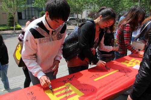 本站讯为了贯彻有关大学生思想品德提升方案的要求,加强学生的自律意识教育,艺术管理学院于5月5日上午在餐厅门口举行了“自律•我能行”签名活动。艺术管理学院全体师生以及其他学院部分师生参加了此次活动。