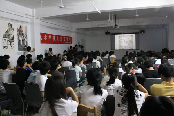 2010年5月25日下午6点,美术学院学生会承办的“美术学院专业交流会”,在美术学院多媒体教室隆重举行。此次专业交流会主要目的在于为大一新同学解决专业选择中出现的各种问题。